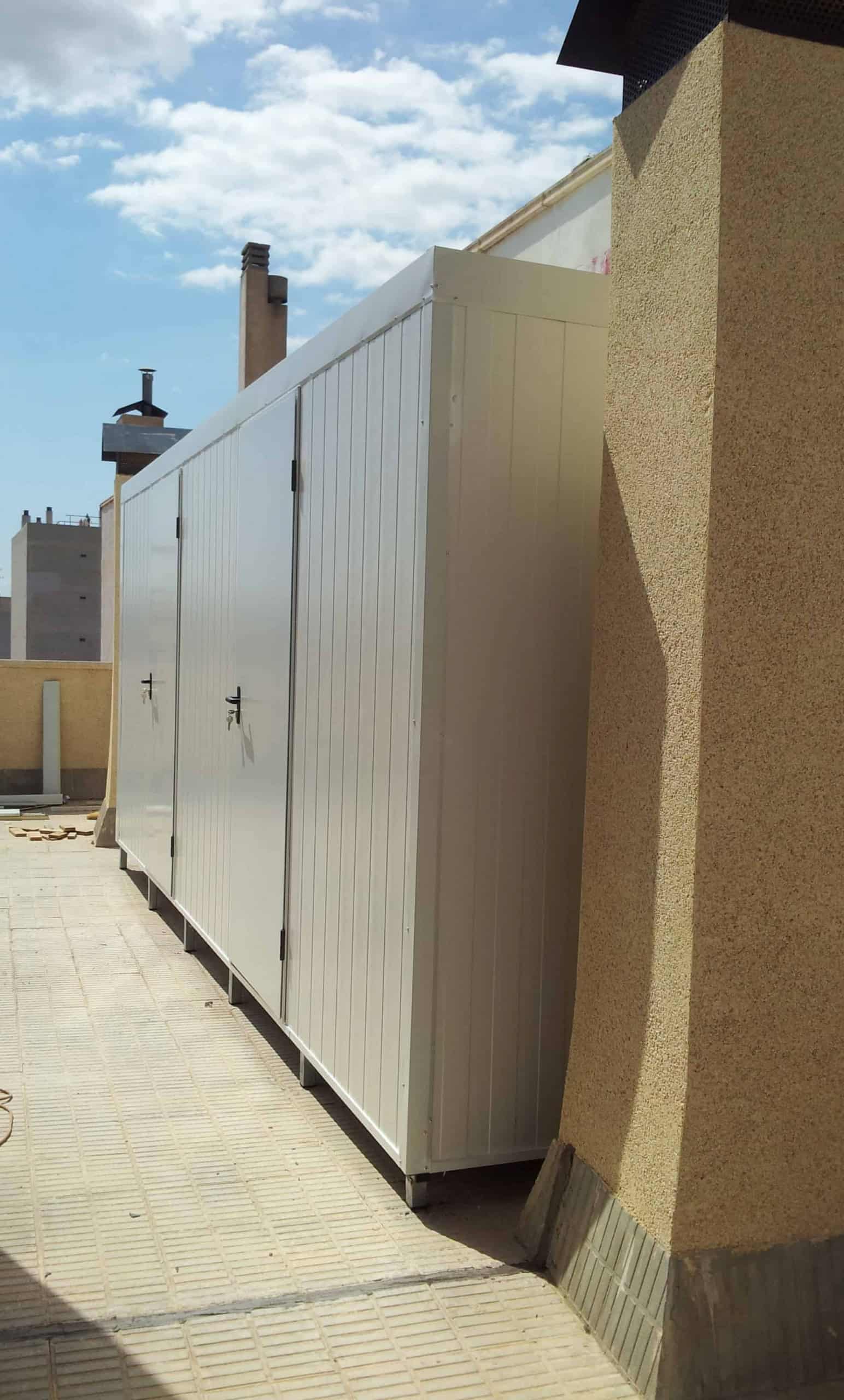 Nueva instalación de trasteros en la terraza de un edificio céntrico de la ciudad de Valencia. Las paredes y techos son de panel sandwich, quedando demostrada la gran calidad de estos nuevos materiales combinados con la solidez y garantía emblemáticas de nuestros productos.